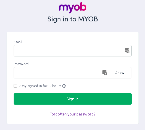 - This will take you to the MYOB login and authorization page