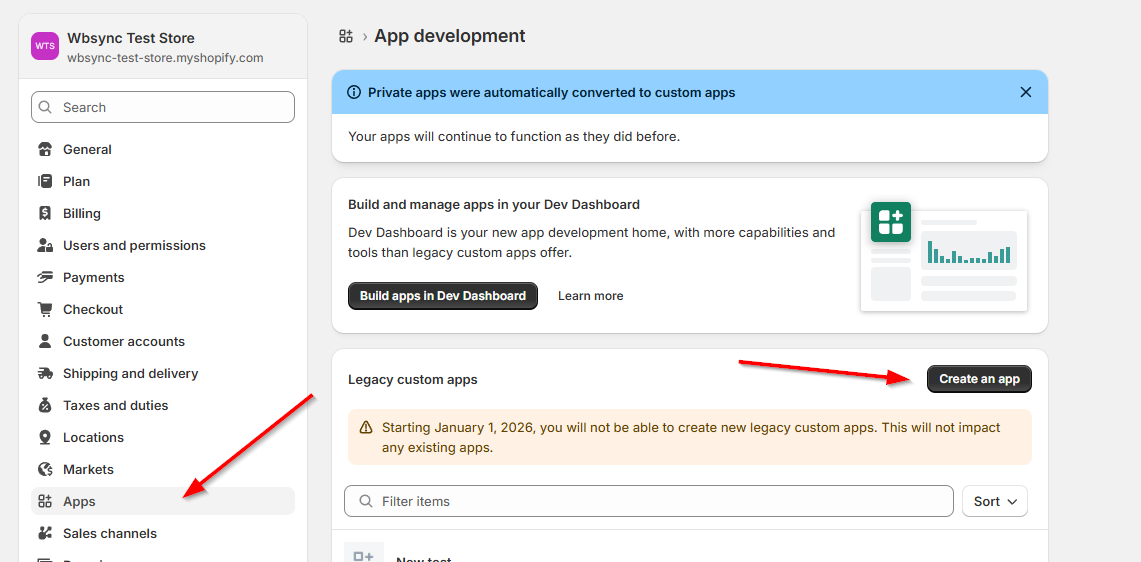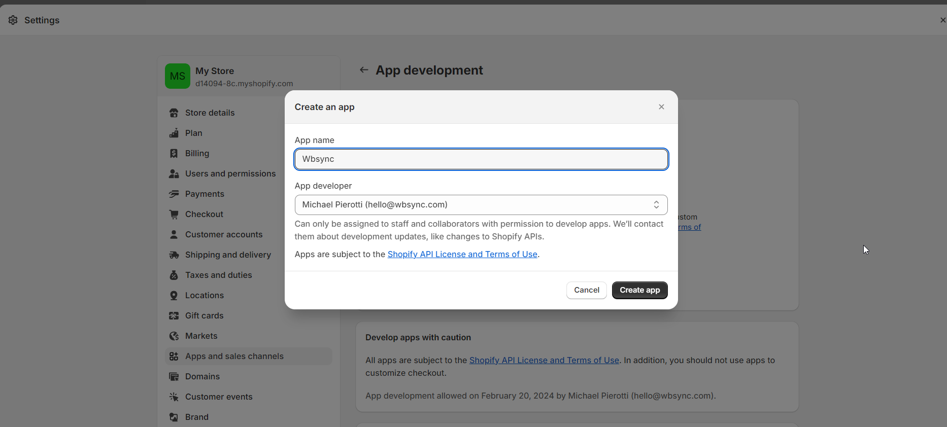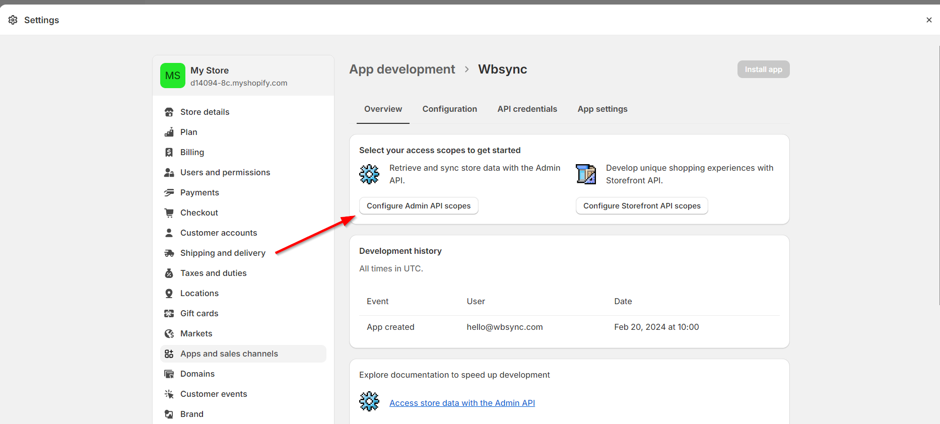If you haven't already, create a new Shopify Connection from the Connections area in Wbsync