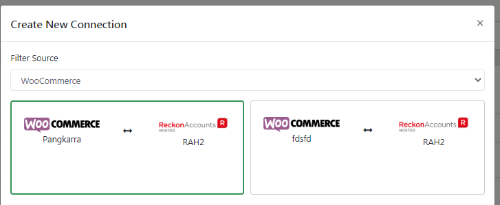- Select your connection from the list. If you have mutliple types available to you, you are able to filter