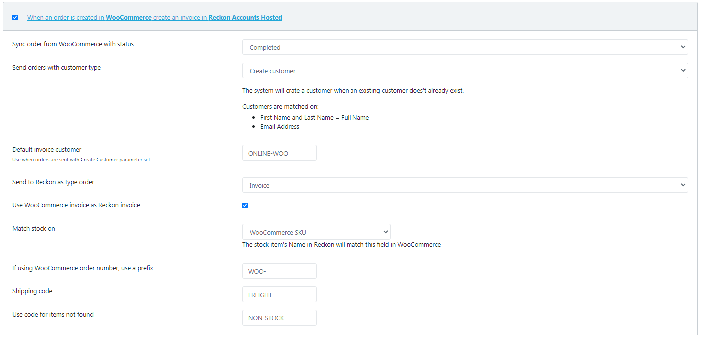 - The following options dictate how the orders flow from WooCommerce to Reckon Accounts Hosted